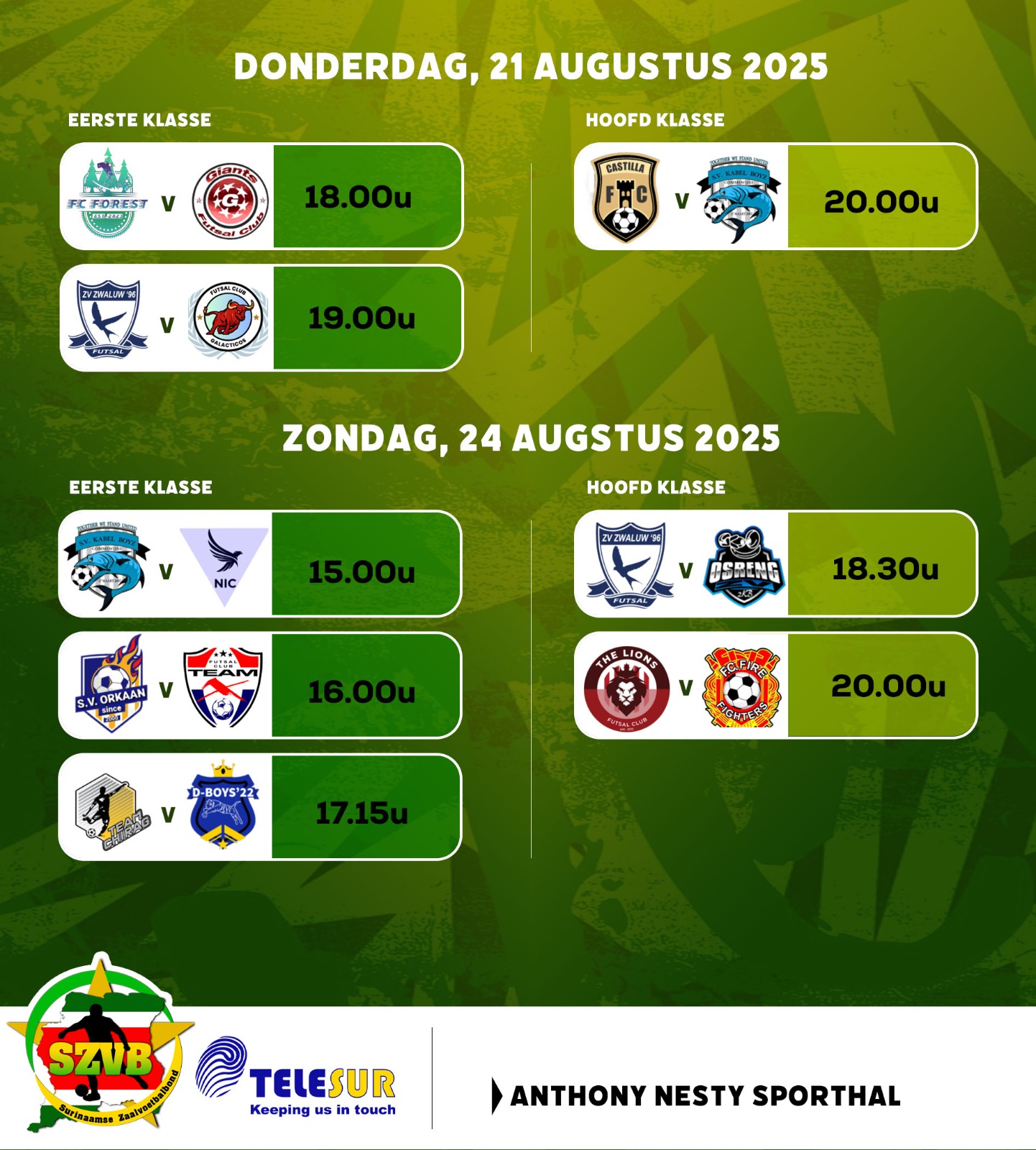 Wedstrijdprogramma Donderdag 21 Augustus & Zondag 24 Augustus 2025